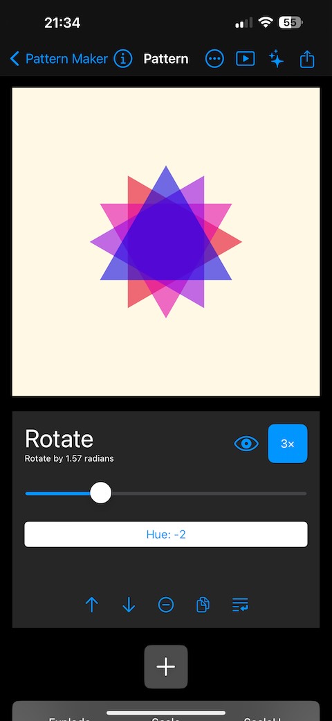 Pattern Maker is a iPhone, iPad and MacOS App for No Code Creative Coding. It is a free download, with a one off in app purchase to unlock some advanced features, like high resolution exports.